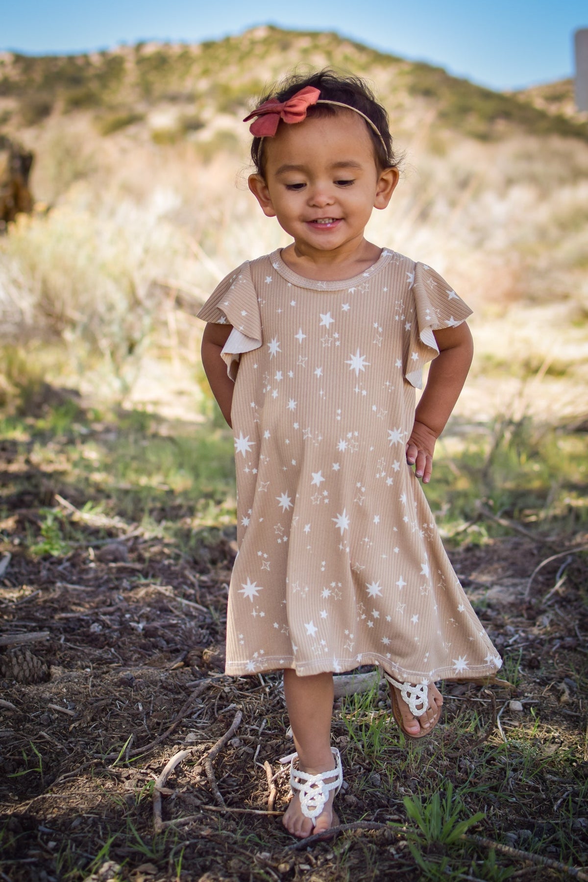 This amazing dress is so versatile and adorable! You can get completely different looks with just a few simple options. The pattern requires knit fabric although if you're savvy with woven fabric you can make the button down front option with woven by lining the bodice or using bias tape!